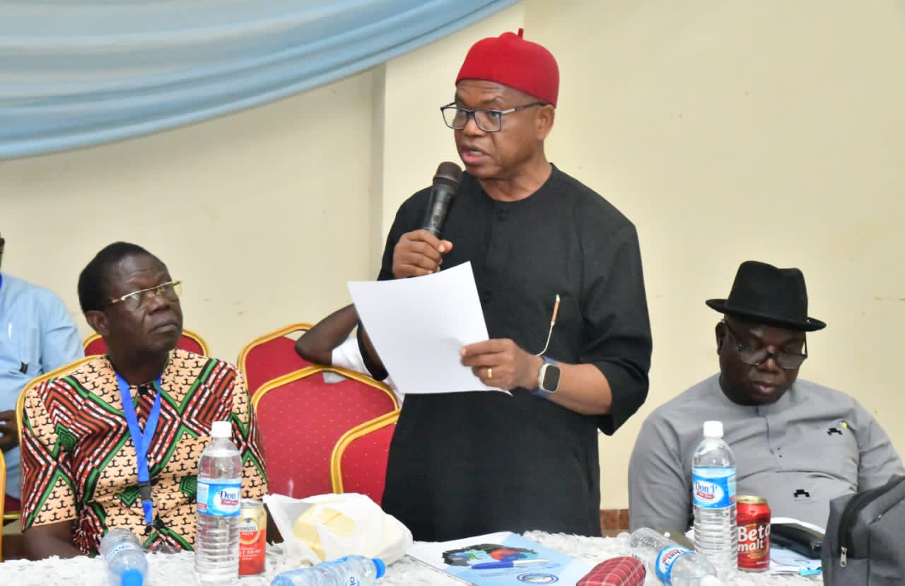 The NDDC Director of Commercial and Industrial Development, Dr. Godwin Nosiri (middle), speaking during a One-day Sensitisation Workshop on the establishment of NDCCITMA in Benin City, Edo State.