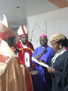 Prophetess Adeyinka taking the oath of office as the Bishop of El-Shaddai Pentecostal Church, Abeokuta