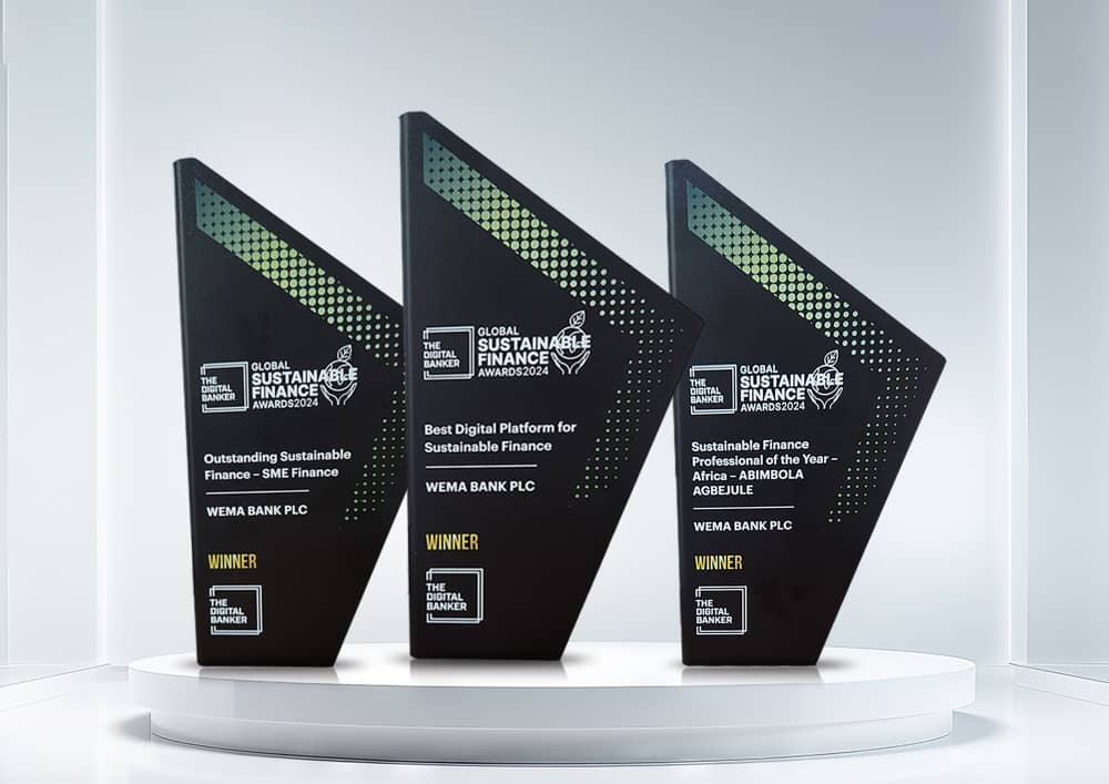 Wema Bank, Nigeria’s foremost innovative bank and pioneer of Africa’s first fully digital bank, ALAT, has received three prestigious awards at the 2024 Global Sustainable Finance Awards, which was hosted by The Digital Banker.