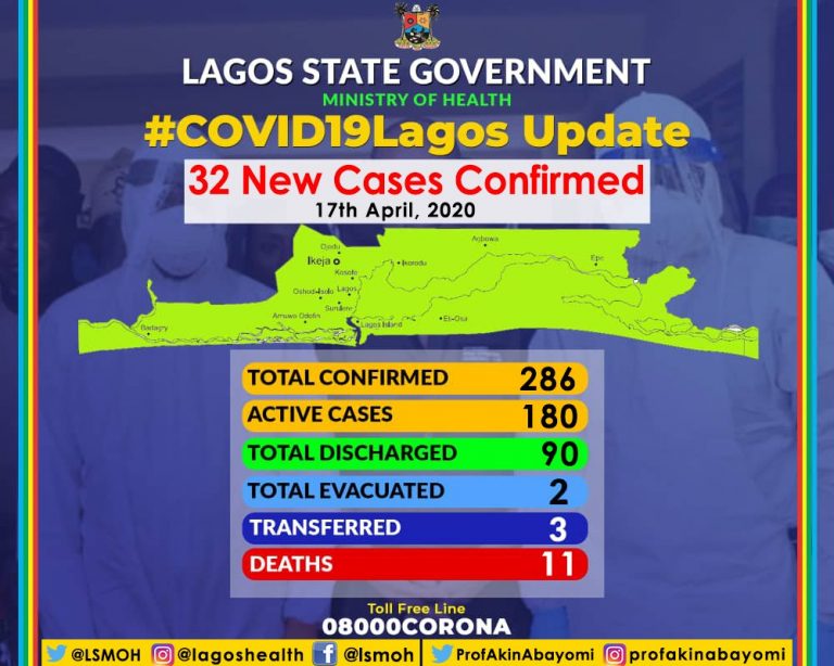 Of the 286 COVID-19 confirmed cases in Lagos, 90 have been discharged.