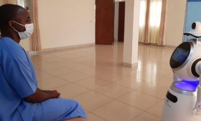 A high-tech robot developed by Zora Bots, a Belgium-based company, and donated by the United Nations Development Program (UNDP) checks the temperature of a health...