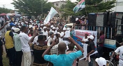 Yoruba Nation agitators later regrouped under November 27 Bridge along Osogbo/Gbongan Road, Osogbo. Yoruba Nation protesters regrouped under November 27 Bridge along...