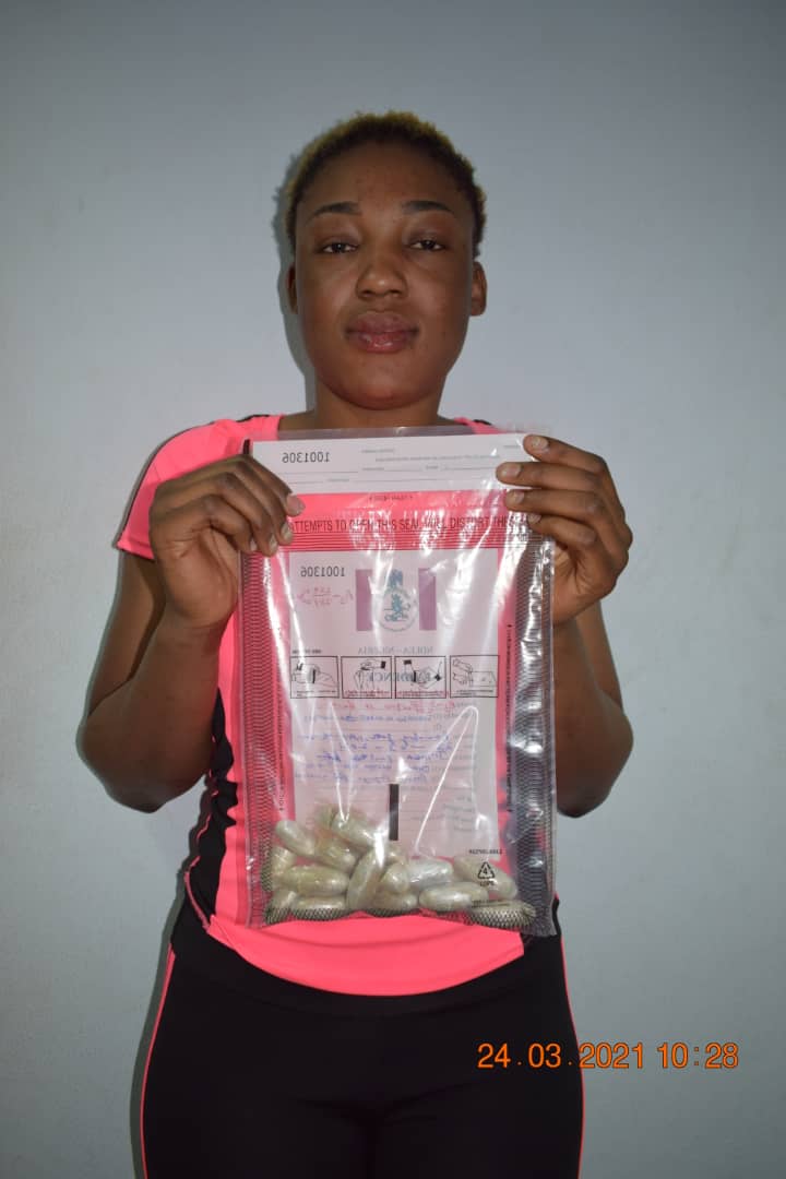 The Commander, Nnamdi Azikiwe International Airport, Abuja Command of the NDLEA, Kabir Sani Tsakuwa, said while Okojie James was arrested last Saturday, Vivien was nabbed on Tuesday 23rd March, 2021. He added that both suspects would soon face prosecution.