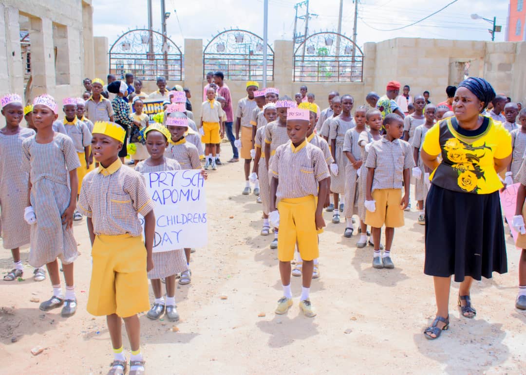 Olori Janet Afolabi, Oueen of Apomu Kingdom, headquarters of Isokan local area, hosted 400 children of Apomu to mark this year’s Children’s Day.