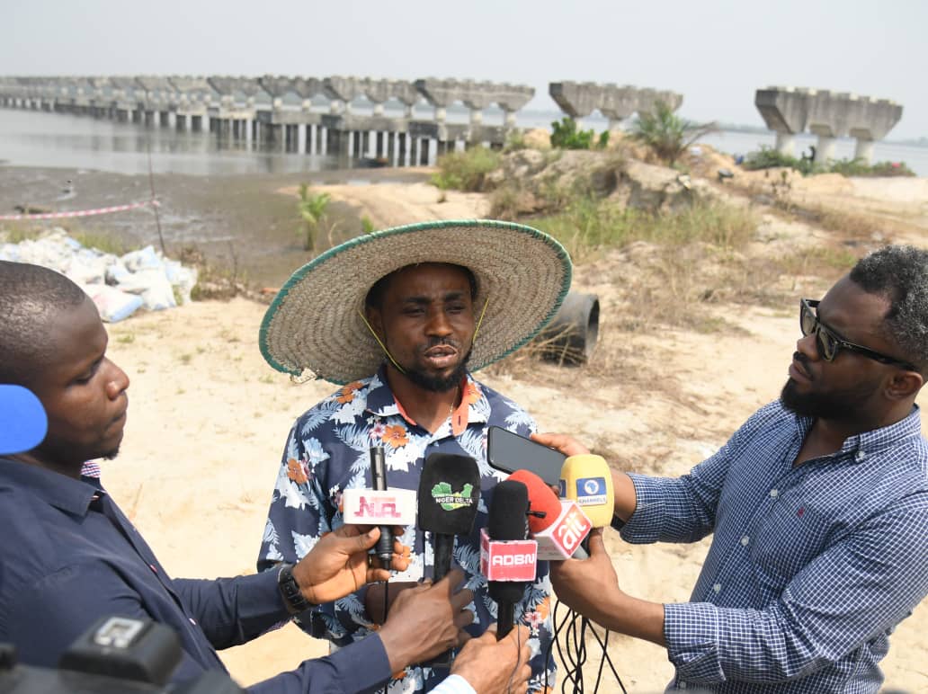 The project Supervisor, Engr. Lawrence Ekanem, responding to questions at the site of the Kaa-Ataba Bridge and Road project in Khana Local Government Area of Rivers State.