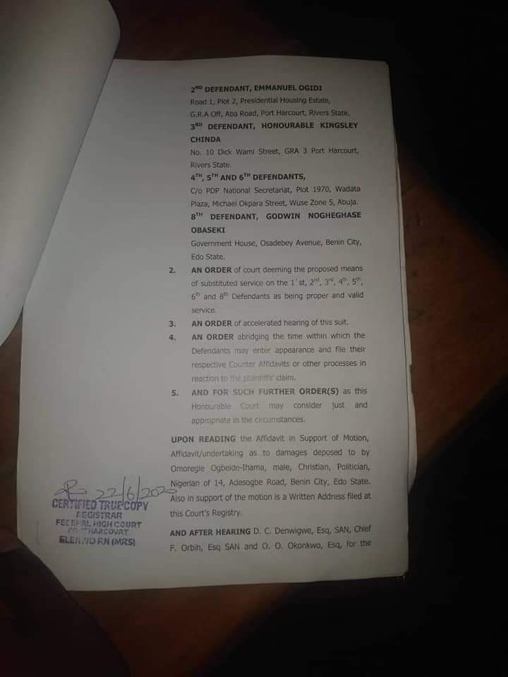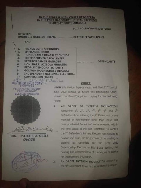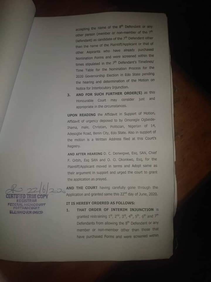 The suit was instituted by an aspirant Omoregir Ogbeide-Ihiama asking the court to stop the governor who just decamped to the party from participating in the shadow election.