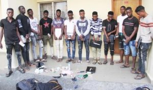The suspects—Oluwaseun Ogunbunmi, Haruna Yusuf , Olubori Hassan, Wasiu Idowu, Basit Adeniran, Aina Olajuwon, Okafor Joseph, David Ado, Olamide Ogunseye, Opeyemi Ahmed , Monsuru Amao, Taiwo Rasak- were arrested on Thursday, August 29, 2019 in a rented three-bedroom apartment in the Ikotun area of Lagos, which they used as a Yahoo Yahoo school.
