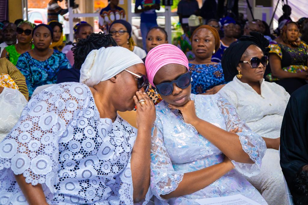Wife of the deceased, Mrs. Folashade Kadiri and her daughter, Olamide, during the Christian Wake-keep of late Oluwashola Akeem Kadiri, at the Beehive school hall, CBD, Alausa, Ikeja, on Thursday, 11th August, 2022.
