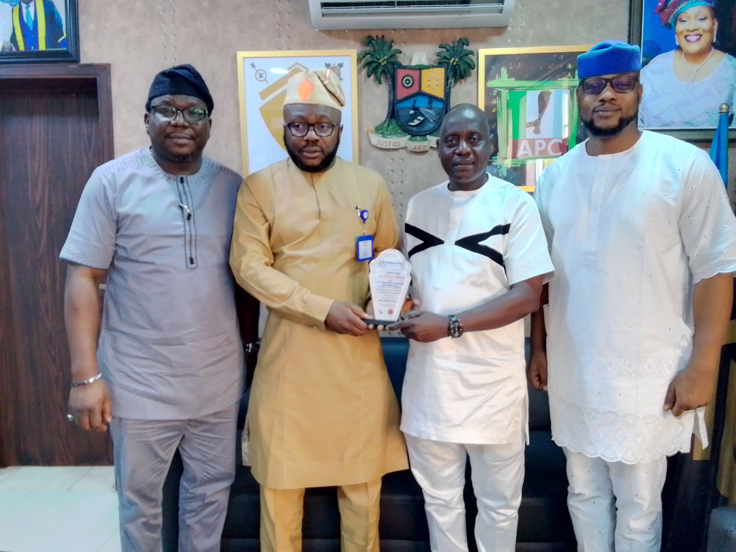 L-R: Hon. Adedamola Richard Kasunmu receiving the award from Wale Abiodun, CEO Prestige Media Group