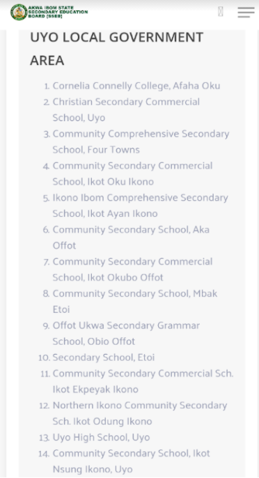 The school, Community Secondary School Oku Uyo, was also missing on the list of government secondary schools in Uyo Local Government Area, provided by the Akwa Ibom State Secondary Education Board.