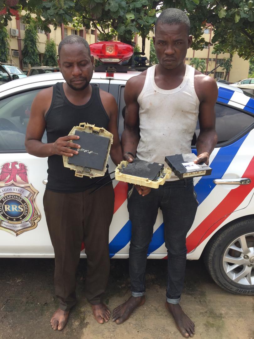 The operatives of the Lagos State Rapid Response Squad, a unit of the Lagos State Police Command, have arrested two suspects, who specialized in vandalizing vehicles and stealing their brain boxes.