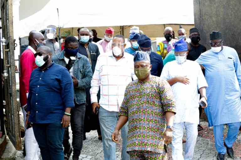 The Speaker of Lagos House of Assembly, Rt. (Hon) Mudashiru Obasa and other members of the House on Monday paid a condolence visit to the family of Late Hon Olatunde Braimoh, a member of the assembly who died on Friday, July 10, 2020, two months to his 60th birthday.