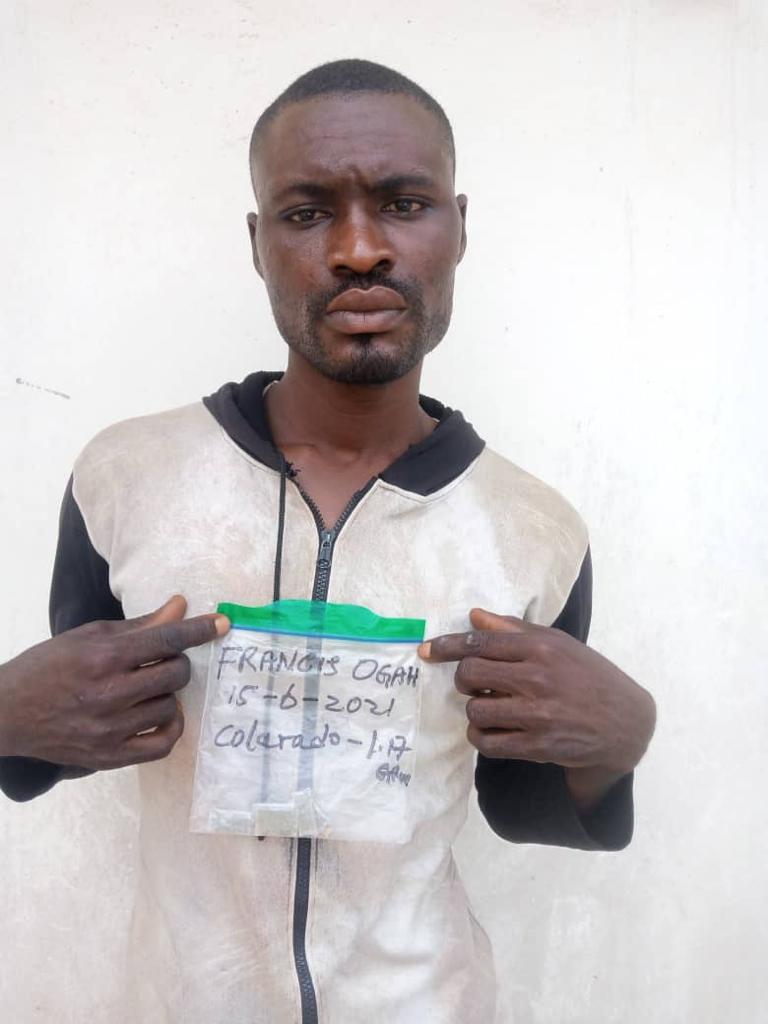 A serving officer of a law enforcement agency, Popoola Abayomi has been arrested for selling assorted illicit drugs to students of a federal university and cultists in Ogun state.
