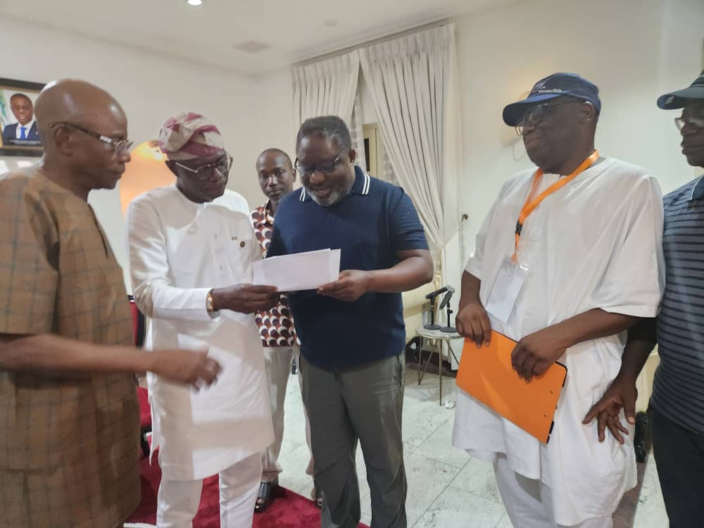 The presentation by  Senator Tokunbo Afikuyomi, Head of Lagos APC Election Task Force for the governorship and House of Assembly Elections, in the company of State Chairman of APC; *Pastor Cornelius Ojelabi*, *Mr Fuad Oki* (Chief Collating Officer) and *Mr Dele Alake* (Special Adviser Media to President-Elect H.E Asiwaju Bola Ahmed Tinubu)