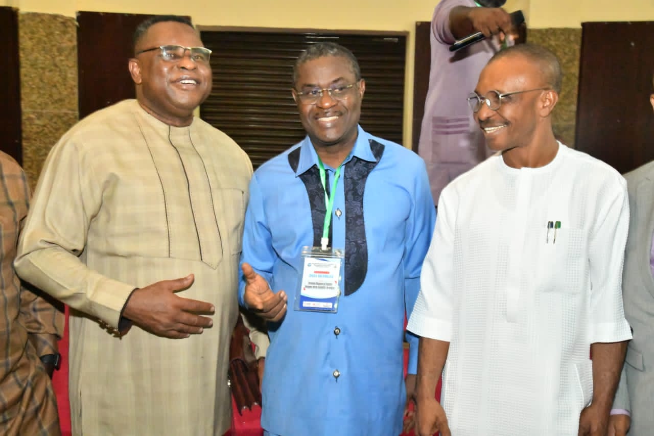 L-R: An environmental scientist and lecturer at the University of Lagos, Professor Lucian Chukwu; the NDDC Director, Environmental Control and Protection, Engr. Onuoha Obeka and the Akwa Ibom State representative on the NDDC Board, Apostle Abasiandikan Nkono, during a three-day retreat on Environmental Management and Competence at the Ibom Icon and Resort in Uyo. Op