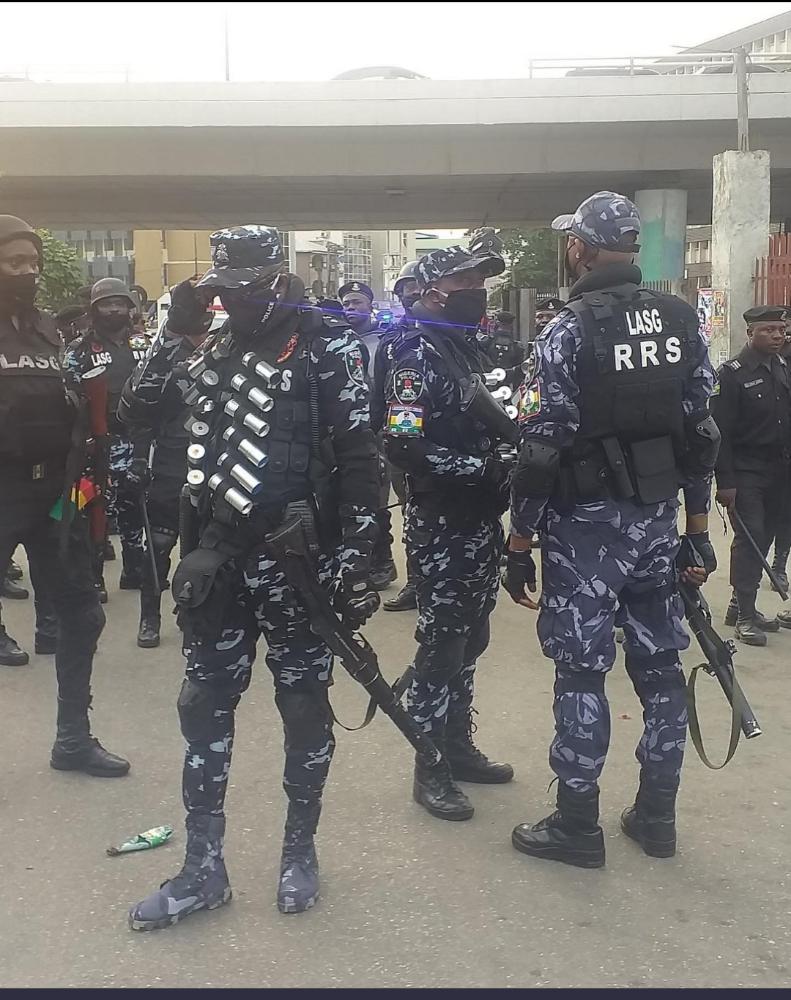 On Saturday morning, dozens of armed police officers were stationed at the tollgate awaiting any protesting group. At about 7 a.m., about three patrol vans filled with police officers headed towards Lekki. It was unclear what their mission was.