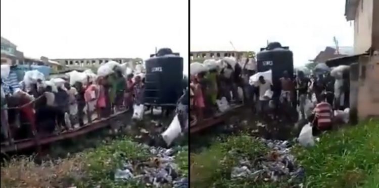 A viral video has shown residents of Mazamaza area of Mile 2, Lagos, Southwest Nigeria looting COVID-19 palliatives, kept in a warehouse by Lagos State Government.