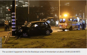 The Argentine was travelling in a taxi in Amsterdam when it careered off the road and into a pole.