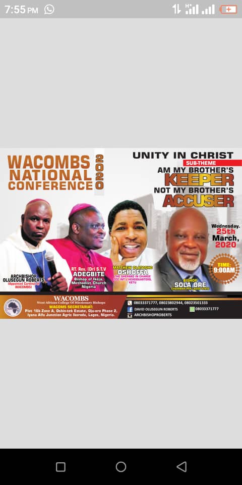 The west African College of Missionary Bishops Nigeria Chapter held 2020 Annual Conference on Wednesday 25th of March.