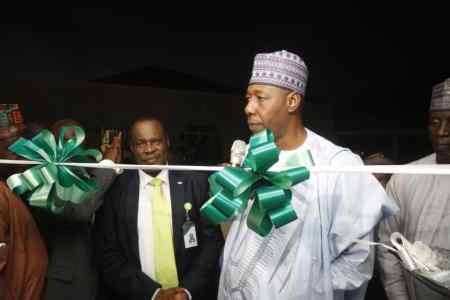 Governor Babagana Zulum commends Unity Bank before cutting the tape during the official commissioning of a building donated to Borno SUBEB by Unity Bank Plc.